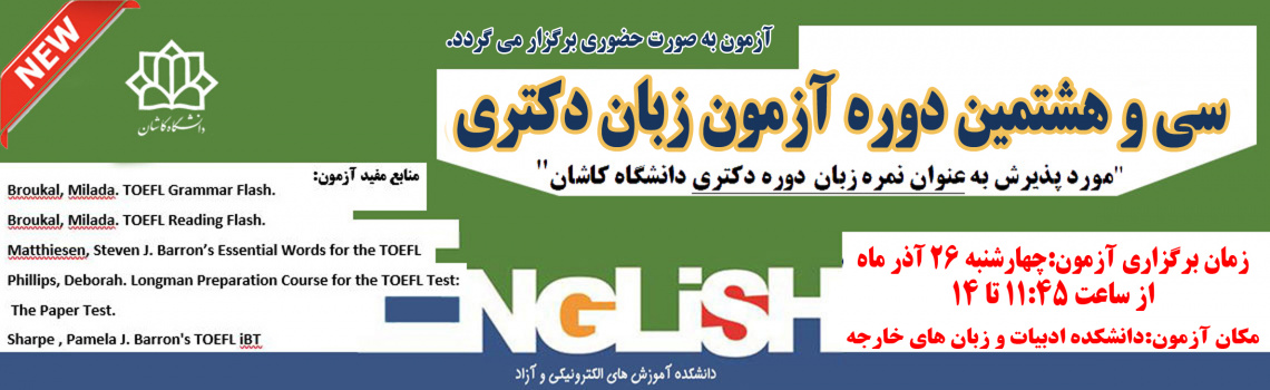 سی و هشتمین آزمون زبان دکتری دانشگاه کاشان آذرماه ۱۴۰۴
